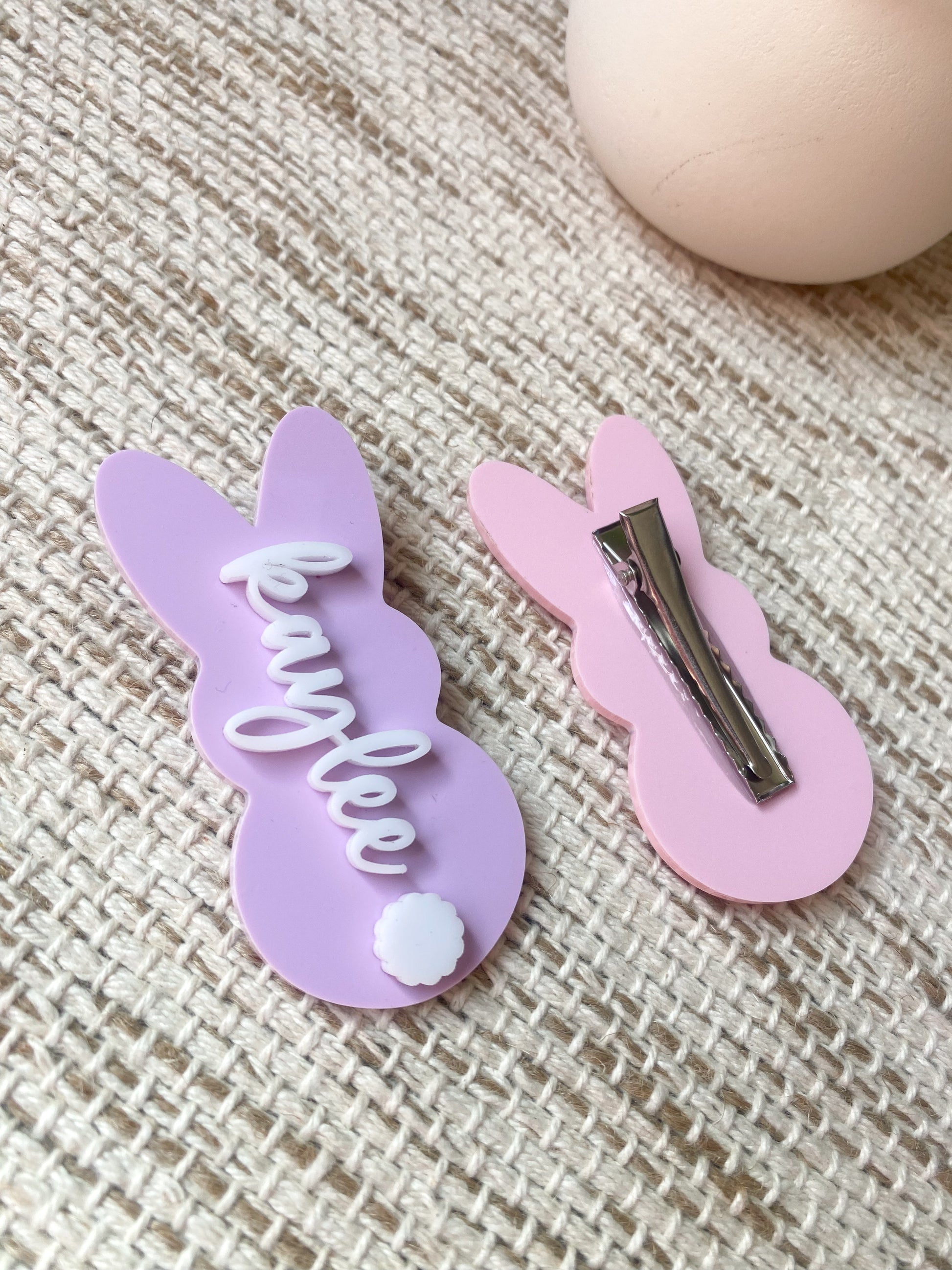 These bunny hair clips are designed to be as unique as the person wearing them. Personalize yours today and make this Easter even more special!
